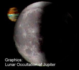 What’s an occultation? Well, in astrological realms, it means the covering of a planet by the Moon! Consider a Solar Eclipse – this is when the Sun is blocked by the Moon (as we view it from Earth). A lunar Occultation of..say Jupiter, is when the planet Jupiter is blocked (eclipsed briefly) by the Moon! Jupiter can be seen by the naked eye on a clear night, at certain months of the year, and sometimes the moon passes in front of it. .