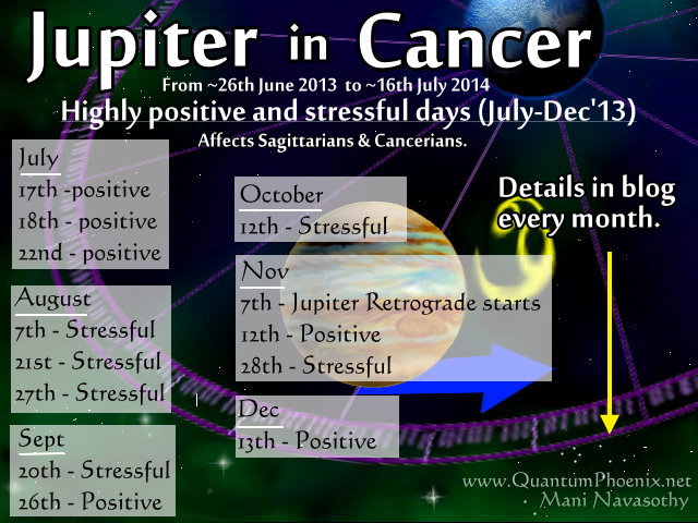 Note / Retrograde: Jupiter will be retrograding for about 5 months …between 7th November’13 to about 6th March’14.. during which time, new progress in these areas may be slow and limiting, but it will be opportunity for covering lost grounds, taking alternate options, reviews & consolidations.. ! Then more progress and changes will accelerate for a further 4 months (up to July’14)..