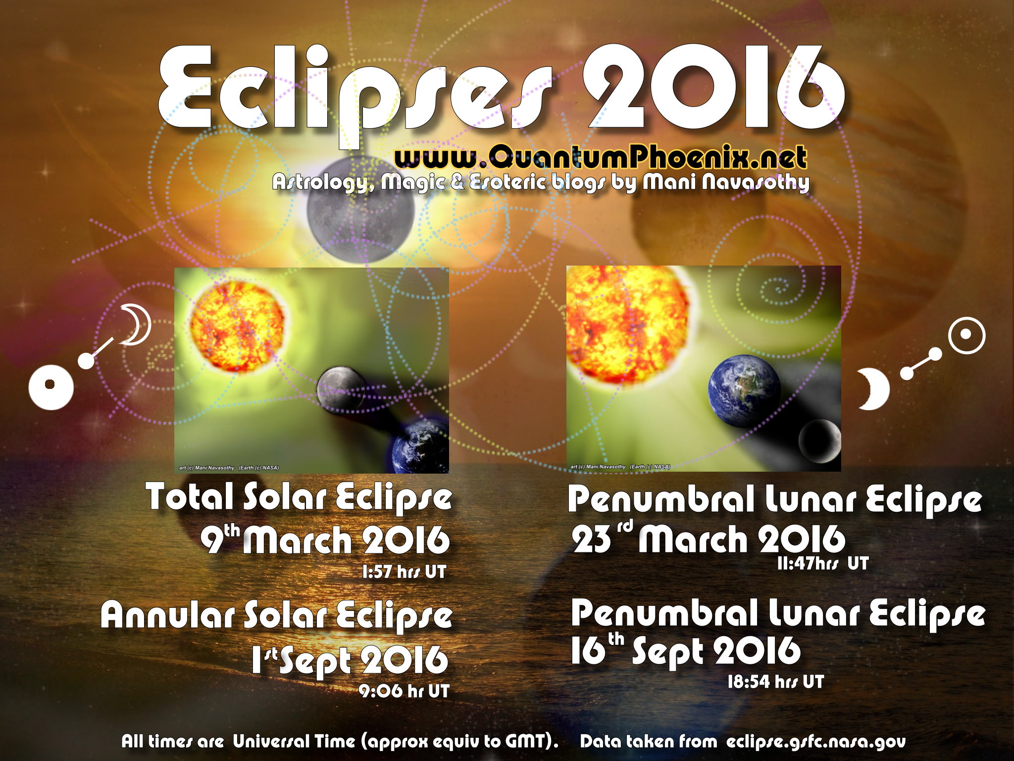 The Eclipses are coming! Are you ready for the deeper magical work and to stellar engineer your lives? Well, let me kick this off with a basic infographics, showing the times/ dates and types of eclipses that will be occurring in March 2016 and September 2016. I’ll be collating and sharing (blogging) astronomy graphics, animations, as well as my own astrology charts for the date/time of each Eclipse ..(check my blog http://www.QuantumPhoenix.net over the next few days/ weeks).