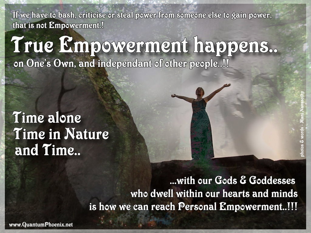 Time alone, Time in Nature, and Time with our Gods & Goddesses who dwell within our hearts and minds – is how we can reach Personal Empowerment.
