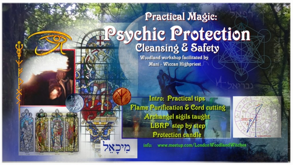 4. LBRP – Lesser Banishing Ritual of the Pentagram – Total energy clearing using Kabalistic Cross, Banishing pentagrams, then calling 4 archangels for protection. Taught step by step. Then we perform it together.